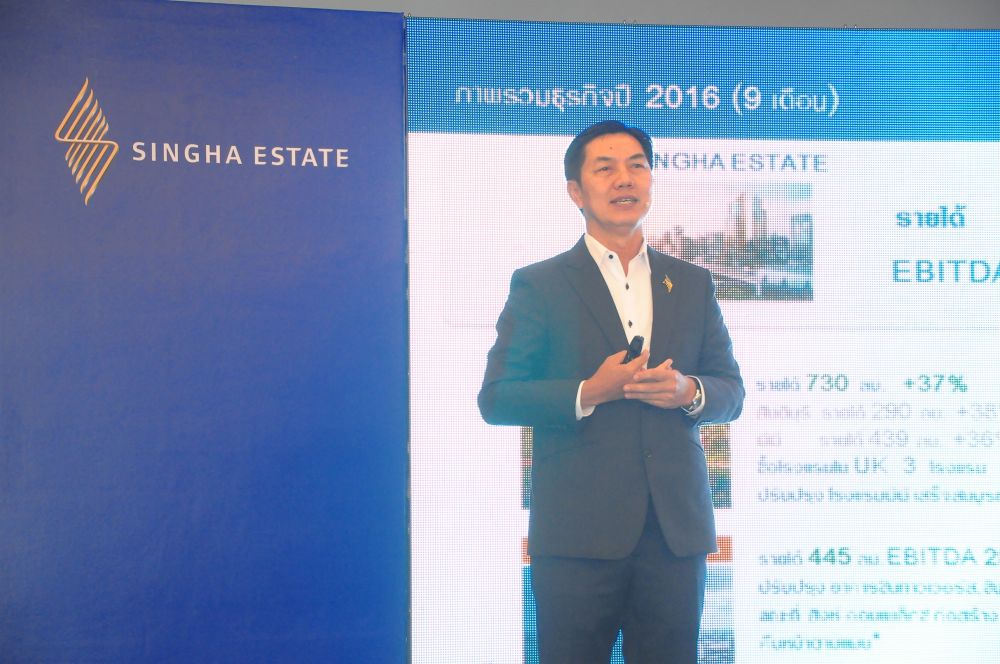 บริษัท สิงห์ เอสเตท จำกัด (มหาชน) แถลงทิศทางธุรกิจในปี 2560 เพื่อมุ่งสู่ความเป็นผู้นำในธุรกิจอสังหาริมทรัพย์ที่จะมุ่งเน้นคุณภาพ และตอบโจทย์ไลฟ์สไตล์คนยุคใหม่ได้อย่างครบถ้วน ภายใต้กลยุทธ์การสร้างมูลค่าเพิ่มในสินทรัพย์ และพัฒนาโครงการระดับซูเปอร์ลักชั่วรี่ทั้งในกลุ่มโรงแรม คอนโดมิเนียม บ้านพักอาศัย และอาคารสำนักงาน รวมทั้งคัดสรรพันธมิตรทางธุรกิจที่มีศักยภาพ โดยทุ่มงบประมาณ 15,000 ล้านบาทเพื่อสร้างการเติบโตอย่างแข็งแกร่งและต่อเนื่อง
