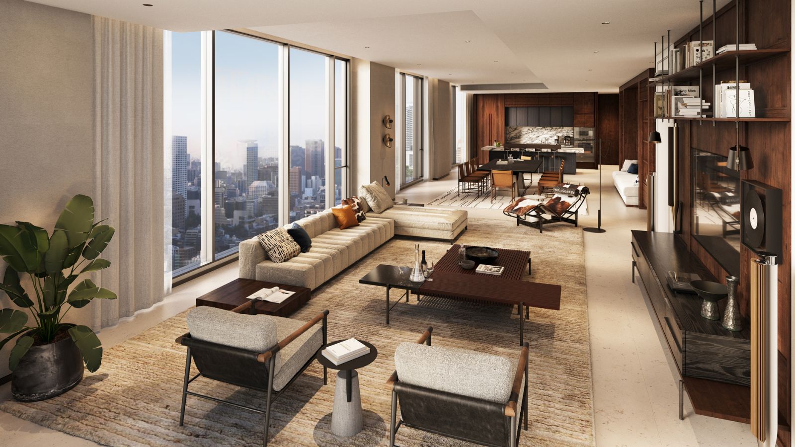 นอกจากนี้ทุกตารางนิ้วยังตกแต่งอย่างพิถีพิถันด้วยเฟอร์นิเจอร์ระดับไฮเอนด์ที่โดดเด่นทั้งดีไซน์และคุณภาพ สะท้อนถึงตัวตนผู้อยู่อาศัยและความใส่ใจในทุกรายละเอียดของโครงการ โดยเฉพาะพื้นที่ครัวซึ่งเลือกใช้เครื่องครัวไฮเอนด์จาก “Molteni&C” แบรนด์เฟอร์นิเจอร์หรูระดับโลกจากอิตาลี