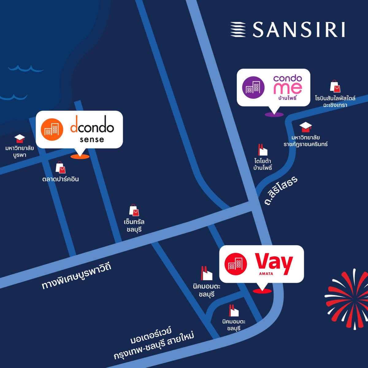 นอกจากนั้นยังมีกลุ่มนิสิต-นักศึกษา กลุ่มผู้ที่อาศัยในพื้นที่ดั้งเดิม รวมถึงกลุ่มนักลงทุนที่เข้ามาซื้อเพื่อปล่อยเช่า แสนสิริคาดว่าทำเล EEC คือโอกาสทองสำหรับลูกค้าและนักลงทุนที่มองหาการเติบโตอย่างยั่งยืน ด้วยศักยภาพที่โดดเด่นและความพร้อมในทุกด้าน”