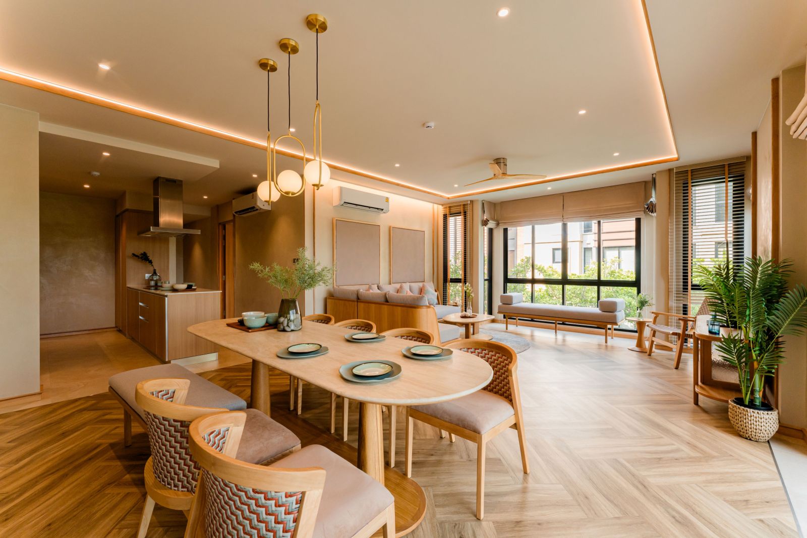 สำหรับรูปแบบการตกแต่งห้องทั้งแบบ 2 และ 3 ห้องนอน มีการตกแต่งที่ให้ความเป็นส่วน ด้วยการแบ่งโซนรับประทานอาหารสำหรับ 6 คนนั่งได้สบาย ๆ ประตูระเบียงด้านนอก สามารถชมวิวได้อย่างชัดเจน เชื่อมต่อจากพื้นที่รับประทานอาหารเป็นพื้นที่นั่งเล่น สามารถวางชุดโต๊ะโซฟาขนาดใหญ่ได้ พื้นที่ส่วนกลางเหมาะสำหรับครอบครัวได้ทำกิจกรรมร่วมกัน ส่วนด้านหลังเป็นพื้นที่ครัวแบบเปิดมาพร้อมอุปกรณ์ครบครันใช้งานได้จริง
