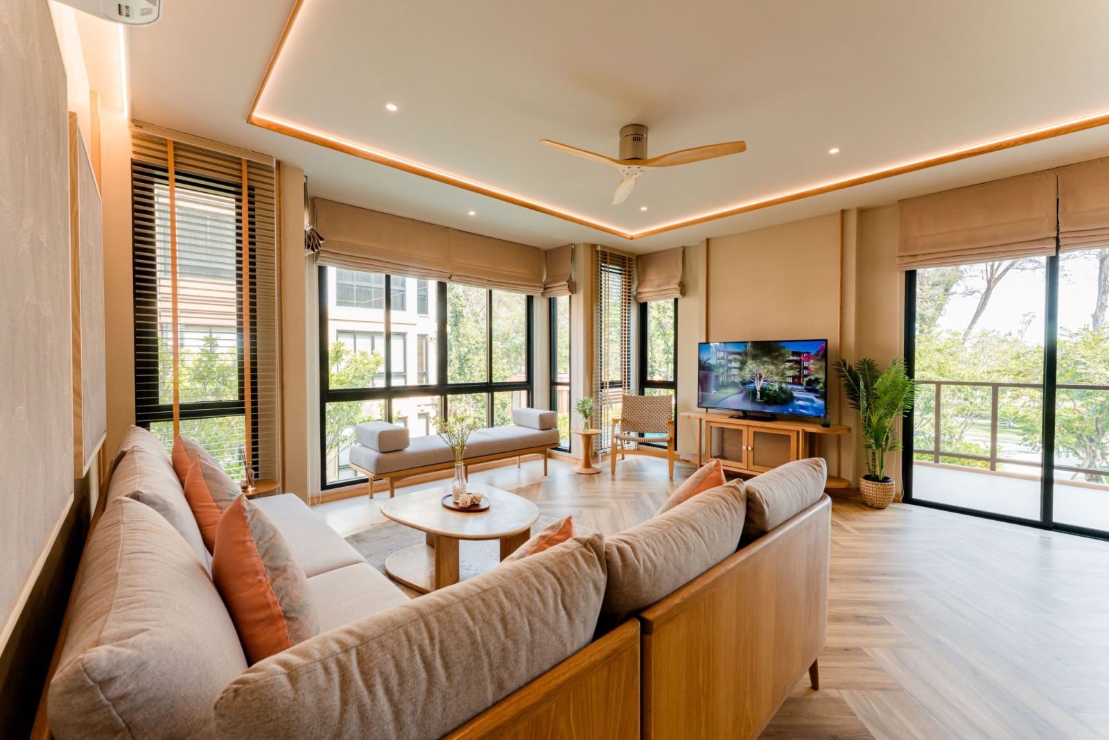 โดยรูปแบบของห้องพักที่นี่ยังมีหลากหลาย Type ให้เลือก ซึ่งในวันนี้จะพามาชมในส่วนของแบบห้องที่เป็นไฮไลท์ของโครงการกัน ซึ่งคือแบบห้อง 2 และ 3 ห้องนอน มีขนาดพื้นที่ใช้สอยเริ่มต้นที่ 74-160 ตารางเมตร นับว่าเป็นขนาดห้องพักที่สามารถรองรับการพักผ่อนของครอบครัวได้เป็นอย่างดี เน้นการใช้วัสดุธรรมชาติ ด้วยดีไซน์ทรอปิคอลมีความเรียบง่ายและกลมกลืนกับธรรมชาติมาผสมผสานในการออกแบบ