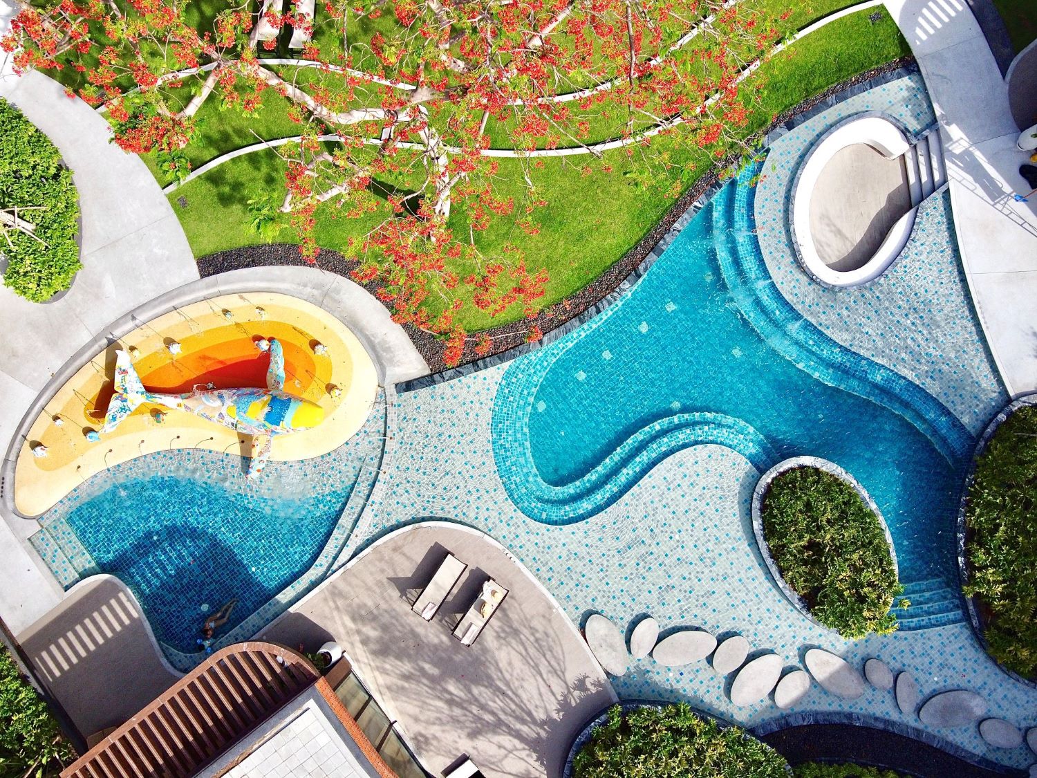 หรือจะพักผ่อนเพลิดเพลินไปกับสิ่งอำนวยความสะดวกกว่า 1 ไร่ กับสระว่ายน้ำ 5 แบบ 5 สไตล์ ใจกลาง Landscape ที่สวยงาม ประกอบด้วย Lagoon Pool , Lap Pool, Step Waterfall, Hidden Jacuzzi, Kid’s Pool และ Entertainment Pool