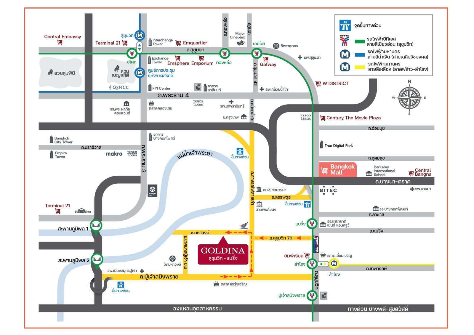 รายล้อมด้วยเมกะโปรเจกต์และแหล่งไลฟ์สไตล์สำคัญ อาทิ ศูนย์การค้าเซ็นทรัล บางนา, แบงค็อกมอลล์ และศูนย์นิทรรศการและการประชุมไบเทค เชื่อมต่อทุกการเดินทางอย่างง่ายดาย เพียง 2 กม. จากรถไฟฟ้าบีทีเอส สถานีแบริ่ง, และห่างเพียง 4 กม. จากทางพิเศษเฉลิมมหานคร (ทางด่วนศรีรัช)