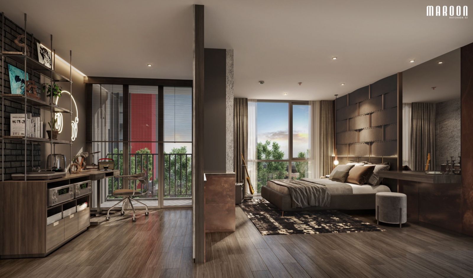 พร้อมเพิ่มความมีชีวิตชีวาด้วยสีแดงมารูน สร้างบรรยากาศสนุกสนาน มีชีวิตชีวา และแตกต่างอย่างมีเอกลักษณ์ ส่วนห้องชุดภายในโครงการเป็นห้อง Fully Furnished ตกแต่งเฟอร์นิเจอร์ครบพร้อมอยู่ ในรูปแบบ 1 Bedroom ขนาดตั้งแต่ 22.9-34.9 ตารางเมตร