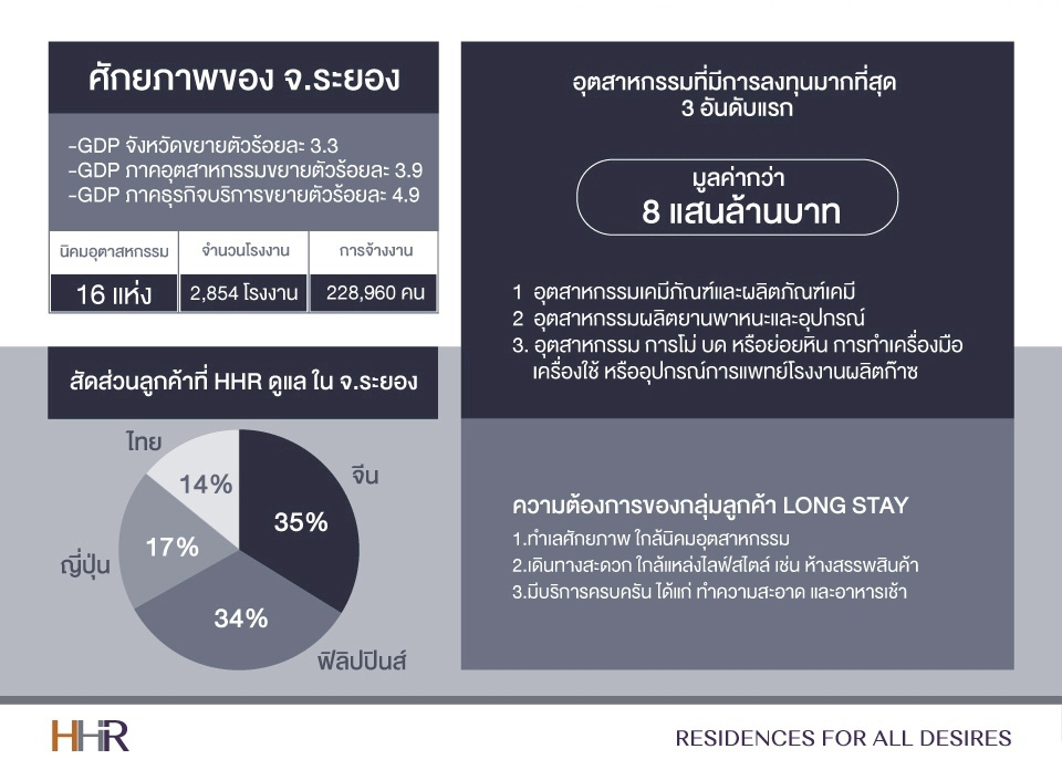 ซึ่งโครงการไฮไลต์ในจังหวัดระยองที่ทาง HHR บริหารจัดการมีจำนวน 2 โครงการด้วยกัน คือ นอตติ้ง ฮิลล์ ระยอง ซิตี้ บาย แฮมป์ตัน (Notting Hill Rayong City by Hampton) จำนวน 204 ห้อง และบริกซ์ตัน ระยอง (Brixton Rayong) จำนวน 279 ห้องมี Occupancy Rate ถึง 85-90% สร้างผลตอบแทน (Yield) ให้เจ้าของห้องถึง 6-8%