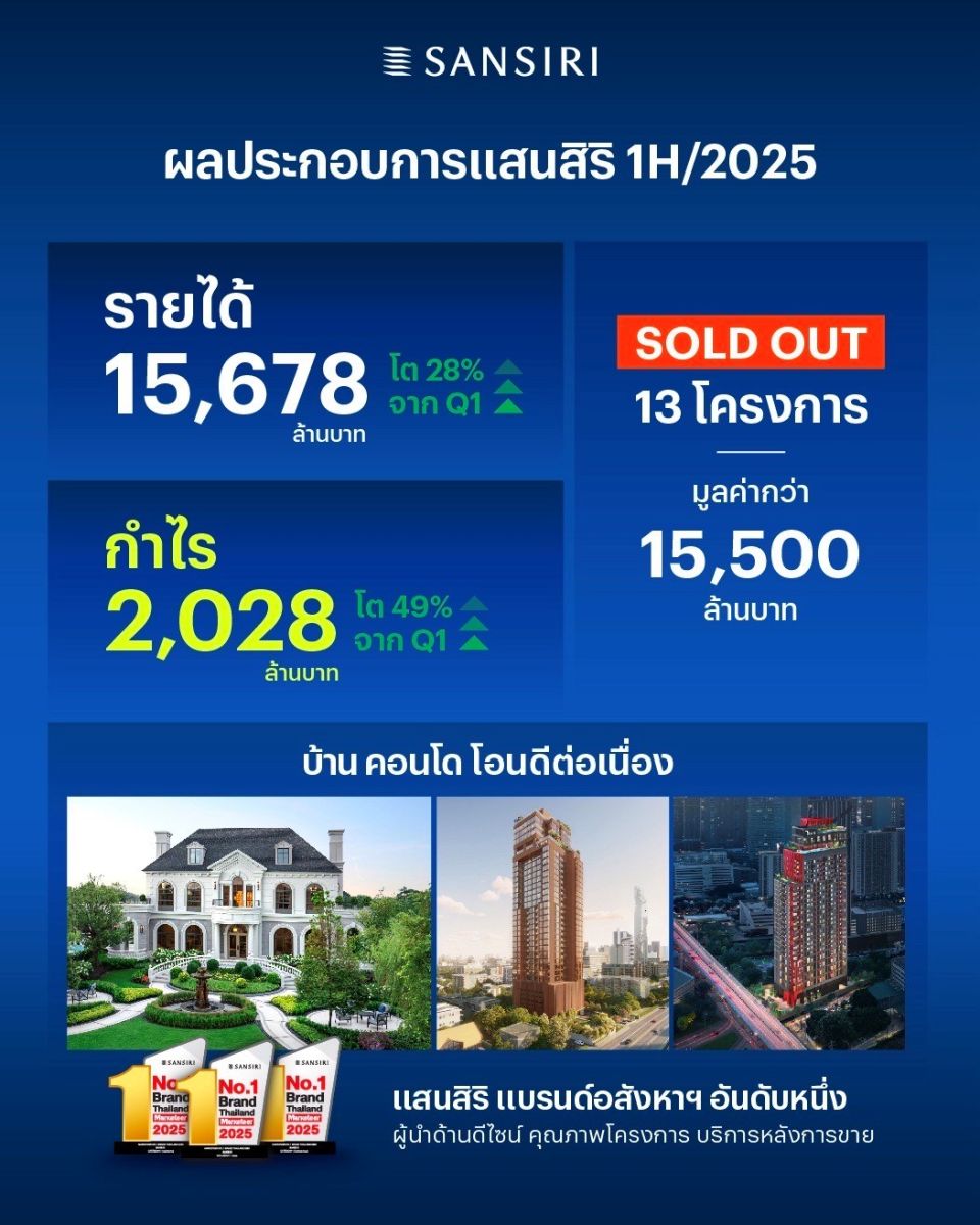นายวิชาญ วิริยะภูษิต ประธานผู้บริหารสายงานการเงิน บริษัท แสนสิริ จำกัด (มหาชน) หรือ SIRI บริษัทอสังหาริมทรัพย์ชั้นนำของไทย เปิดเผยว่า ผลประกอบการไตรมาส 2 ของปี 2568 แสนสิริมีการดำเนินงานที่เติบโตเพิ่มขึ้นเมื่อเทียบกับไตรมาสก่อนหน้า (QoQ) จากการโอนที่ดีขึ้นทั้งแนวราบและคอนโดมิเนียม รวมถึงตลาด Premium และ Medium ยอดโอนกลับมาดีขึ้น