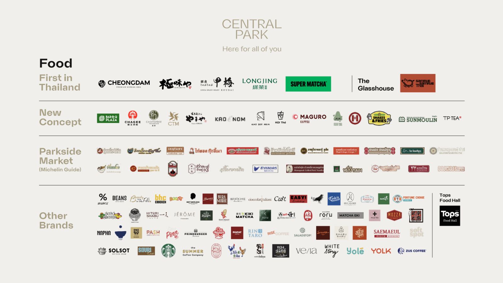 - ร้านดังคอนเซ็ปต์ใหม่ อาทิ MAGURO KAPPOU, GRILL YAMAYA, SUN MOULIN, CHAGEE, BAR B Q PLAZA, NOSE TEA, CHONGDEE, KOI THE’, POTATO CORNER SHAKES & FRIES, CHA TRA MUE, KAO SOY PRIN, MENSHO, TP TEA, สมานฉันท์