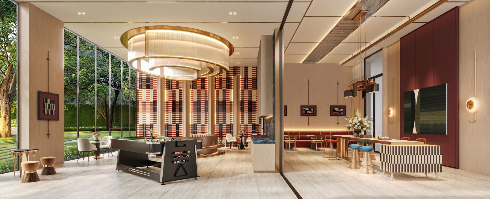 - The Common Club และ The Co-Creation Club พื้นที่รองรับการอ่านหนังสือ ทำงาน ทานบรันช์มื้อสายสบายๆ หรือช่วงเวลาพิเศษสำหรับการพบปะสังสรรค์ในบรรยากาศส่วนตัว พร้อมวิวสระว่ายน้ำที่ร่มรื่นสบายตา