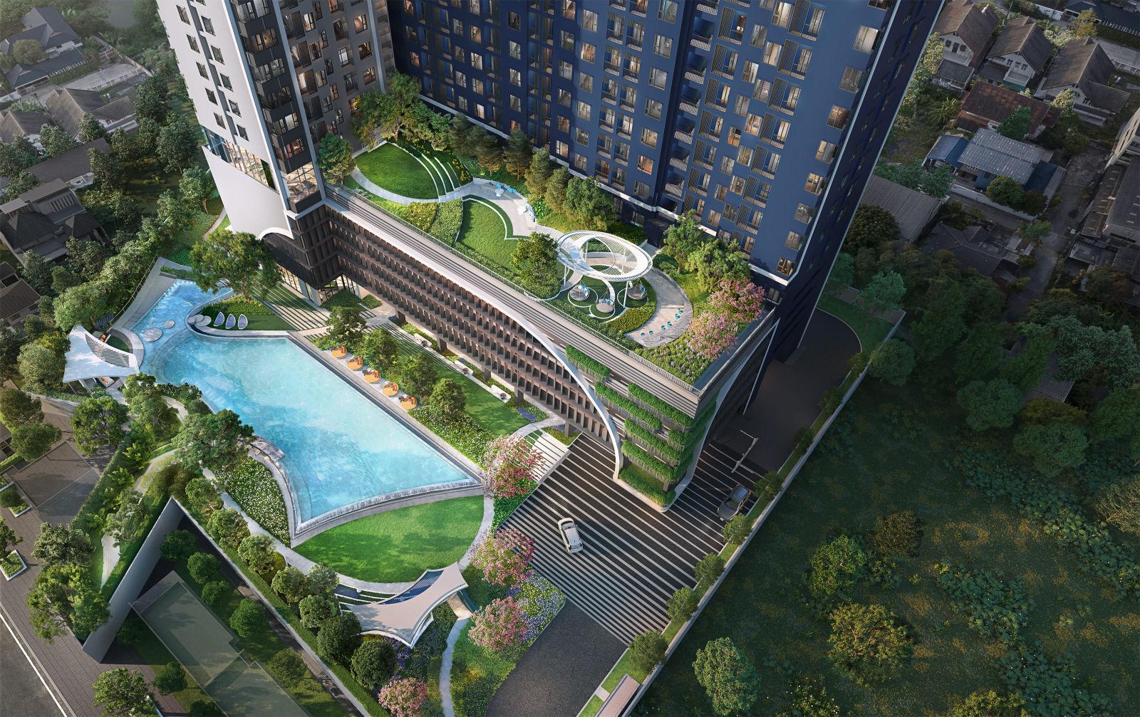 - The Escape Amphitheater พื้นที่ปล่อยใจใต้ต้นไม้ใหญ่ที่ทำให้การใช้ชีวิตในคอนโดแห่งนี้มีมิติยิ่งขึ้น