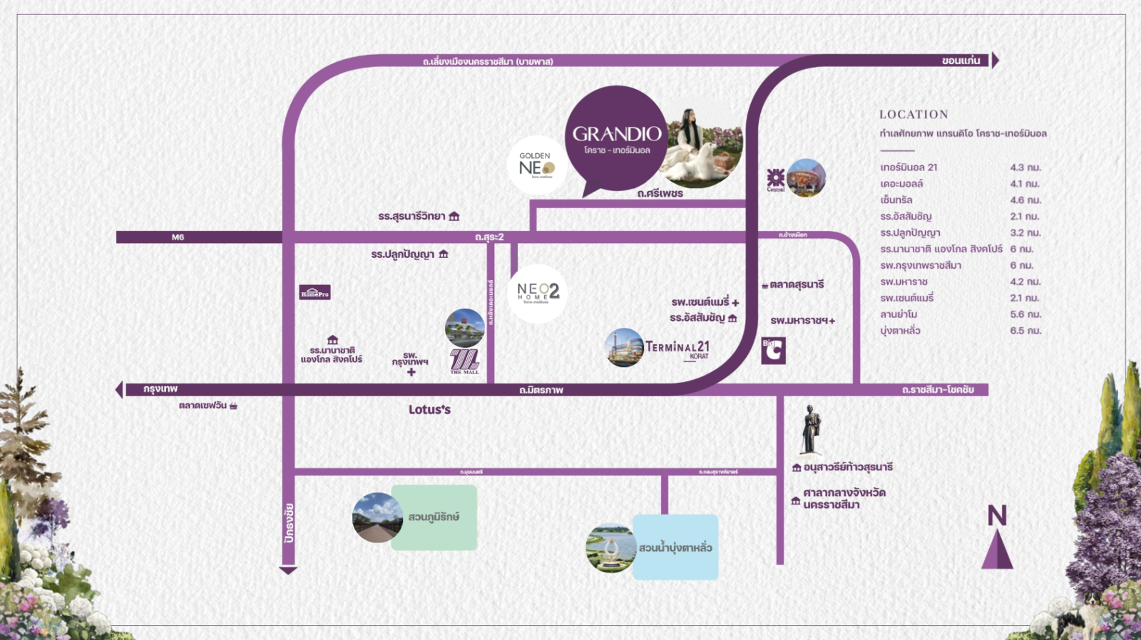 “สำหรับโครงการ แกรนดิโอ โคราช - เทอร์มินอล เป็นโครงการบ้านเดี่ยวสุดหรูสไตล์ยุโรป พร้อมสระว่ายน้ำ มูลค่าโครงการ 1,860 ล้านบาท บนพื้นที่โครงการ 71.64 ไร่ จำนวน 320 ยูนิต โดยทำเลของโครงการตั้งอยู่บนทำเลศักยภาพใจกลางเมืองโคราช บนถนนสุระ 2 สะดวกสบายทุกการเดินทาง สามารถเชื่อมต่อถนนหลักได้ถึง 2 เส้นทาง ทั้งถนนมิตรภาพ และถนนเลี่ยงเมืองนครราชสีมา (ถนนบายพาส) ทั้งยังใกล้ทางหลวงพิเศษหมายเลข 6 สายบางปะอิน–นครราชสีมา (M6)