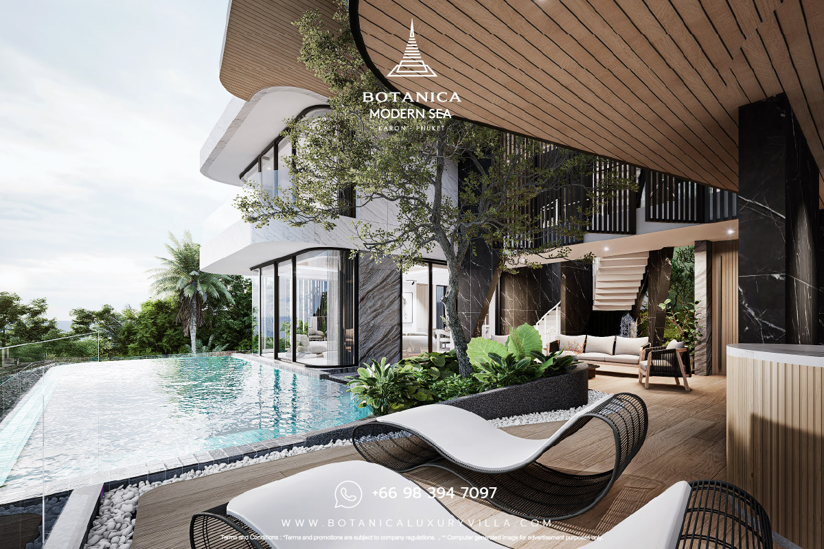 Botanica Modern Sea Karon พูลวิลล่าจำนวน 27 ยูนิต ตั้งอยู่ใจกลางของหาดกะรน ด้วยมูลค่าโครงการกว่า 1,689 ล้านบาท โดดเด่นด้วยความงดงามของสถาปัตยกรรมสไตล์ Modern Tropical ที่ผสมผสานการออกแบบทันสมัยกับธรรมชาติของทะเลอันดามัน ภายใต้แนวคิด “Modern Tropical Living” เน้นการออกแบบพื้นที่เปิดโล่งเชื่อมต่อทั้งภายในและภายนอกอย่างไร้รอยต่อ ใช้หลัก Passive Design ช่วยลดการใช้พลังงานและมอบความเย็นสบายตลอดทั้งปี