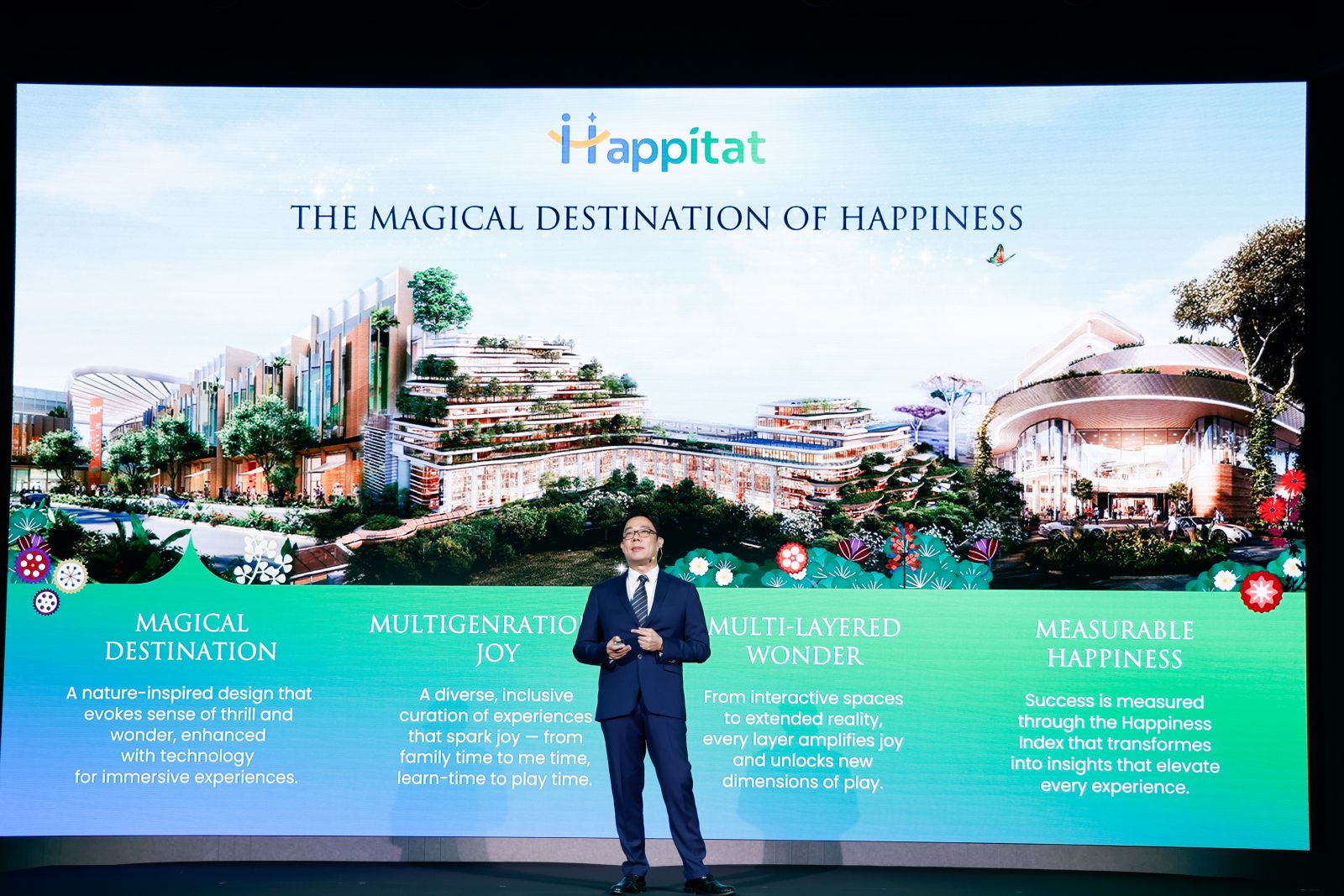 คุณวิสิทธิ์ อุดมกิจโชติ ผู้อำนวยการใหญ่ โครงการ Happitat กล่าวว่า “ไฮไลต์ของโครงการ Happitat คือ อาณาจักรแห่งความสุข ประกอบด้วย 3 อาคาร ที่มีคอนเซ็ปต์แตกต่างกันออกไปแต่เชื่อมต่อกันอย่างกลมกลืน โดยได้รับแรงบันดาลใจจากธรรมชาติ ถ่ายทอดออกมาเป็นงานสถาปัตยกรรมและการออกแบบตกแต่งภายในที่โดดเด่น ลูกค้าจะได้สัมผัสประสบการณ์ที่ทั้งใกล้ชิดธรรมชาติและเติมเต็มด้วยจินตนาการ