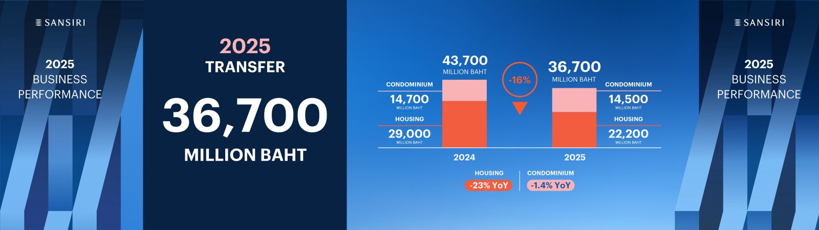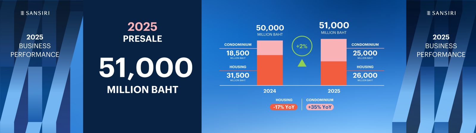 ท่ามกลางภาวะเศรษฐกิจผันผวนและกำลังซื้อที่ชะลอตัว แสนสิริยังคงตอกย้ำความเชื่อมั่นในฐานะผู้นำอสังหาริมทรัพย์ที่แข็งแกร่งที่สุด ด้วยการเปลี่ยนความท้าทายให้เป็นโอกาสผ่านกลยุทธ์ที่แม่นยำและยืดหยุ่น มุ่งสร้างสมดุลแห่งความสำเร็จร่วมกับพันธมิตรทางการเงิน ลูกค้า ผู้ถือหุ้น พนักงาน และสังคม เพื่อขับเคลื่อนเศรษฐกิจไทยให้ก้าวไปข้างหน้าอย่างยั่งยืน
