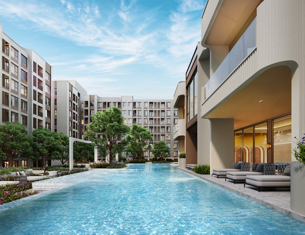 3. Peace in the Center of Lifestyle: โลเคชันใจกลาง New CBD เชื่อมต่ออย่างรวดเร็ว ขณะที่พร้อมปิดซ่อนความวุ่นวายไว้เบื้องหลัง โครงการตั้งอยู่ใกล้ MRT พระราม 9 เพียง 2 นาที รายล้อมด้วยศูนย์กลางธุรกิจ Living Hub ทั้งอาคารสำนักงานและไลฟ์สไตล์มอลล์ ทว่าเมื่อก้าวเข้าสู่โครงการ จะพบกับความเป็นส่วนตัว พร้อมพื้นที่ส่วนกลางใจกลางโครงการขนาดใหญ่ แบ่งพื้นที่ Public และ Private ชัดเจน เพื่อให้ผู้อยู่อาศัยได้ถอยออกจากความวุ่นวาย และกลับมาโฟกัส หยุดพัก รีชาร์จ และเติบโตเบ่งบานในเวอร์ชันที่ดีที่สุดของตัวเอง