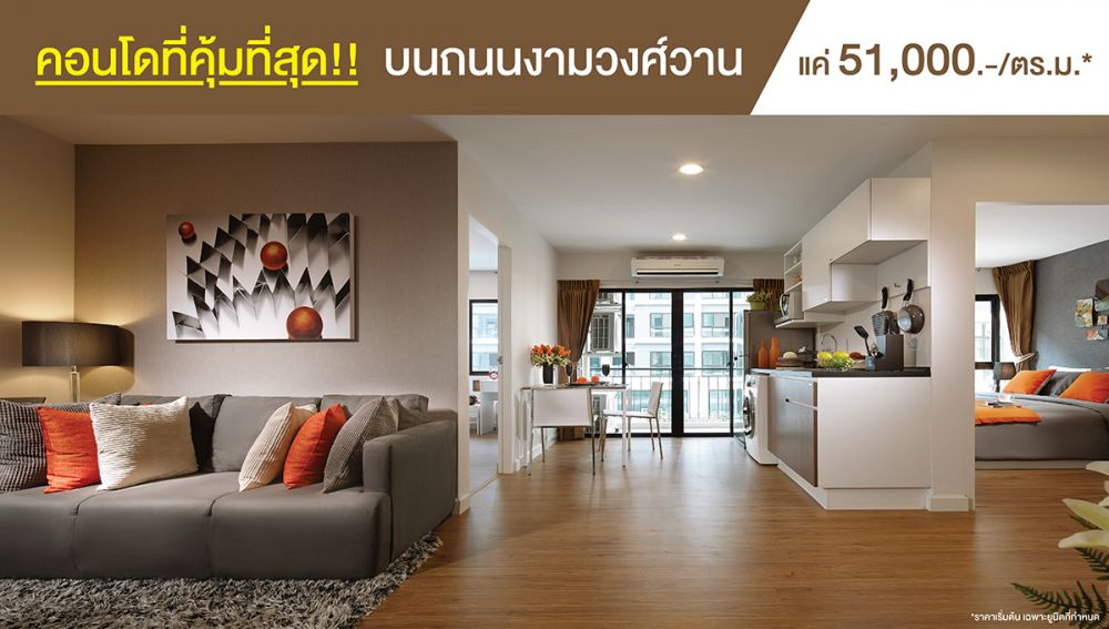 คุ้ม... กับราคาขายที่เราสำรวจแล้ว เรียกได้ว่าคุ้มที่สุดจริงๆ ในย่านงามวงศ์วาน เพราะราคาเริ่มต้น/ตร.ม.ของที่นี่อยู่แค่ 51,000 บาท ส่วนโครงการอื่นๆ นั้นไปไกลถึง 75,000 บาท/ตร.ม.กันไปแล้วทั้งนั้น นอกจากนี้ คอนโดแห่งนี้ ยังสร้างเสร็จ พร้อมเข้าอยู่ได้ทันที จองเพียง 5,000 บาทเท่านั้นก็เป็นเจ้าของได้ทันที และยังไม่ต้องจ่ายซักบาท ฟรีทุกค่าใช้จ่ายวันโอนอีกด้วย โดยมีขนาดห้องให้เลือกหลากหลายตามความต้องการ ทั้งแบบ 1 หรือ 2 ห้องนอน ซึ่งจะมีรายละเอียดราคาขายเริ่มต้นในแต่ละขนาด ดังต่อไปนี้