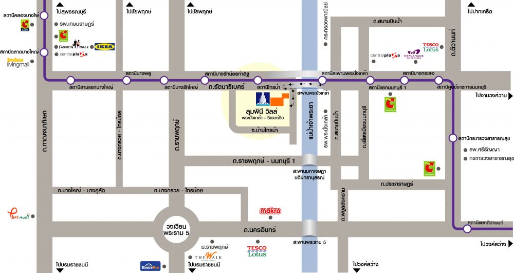 “ลุมพินี วิลล์ พระนั่งเกล้า-ริเวอร์วิว” เป็นคอนโดที่ครบทุกอรรถรสการอยู่อาศัย และยังสามารถเชื่อมต่อการเดินทางด้านบริการขนส่งมวลชนที่ครบถ้วนทั้งรถไฟฟ้า-เรือโดยสารเข้าด้วยกัน ทำให้ทำเลดังกล่าวเป็นแหล่งที่อยู่อาศัยชั้นดี โดยเฉพาะรถไฟฟ้าสายสีม่วงที่เชื่อมต่อทุกเส้นทางจากนนทบุรี-กรุงเทพฯ นั้นอยู่ใกล้กับโครงการถึง 2 สถานี ได้แก่ สถานีไทรม้า และสถานีสะพานพระนั่งเกล้า สามารถช่วยลดระยะเวลาการเดินทางของคนทำงานในเมือง อีกทั้งเส้นทางของรถไฟฟ้านี้ยังผ่านพื้นที่ที่เป็นแหล่งงานสำคัญๆ เช่น ศูนย์ราชการจังหวัดนนทบุรี และหน่วยงานระดับประเทศ เช่น กระทรวงพาณิชย์ กระทรวงสาธารณสุข รวมถึงแหล่งช้อปปิ้งขนาดใหญ่ เช่น เซ็นทรัลพลาซา เวสต์เกต เป็นต้น