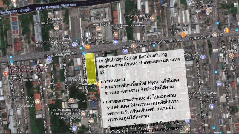 ด้วยโลเคชั่นศักยภาพติดถนนใหญ่รามคำแหง (ซอยรามคำแหง 42) พร้อมกับการมาของ Mega Project ด้วยการ Renovate The Mall Ramkhamhaeng ในอนาคตอันใกล้ ทั้งนี้ยังรายล้อมด้วยห้างสรรพสินค้าขนาดใหญ่อย่าง The Nine ,Foodland, เดอะมอลล์บางกระปิ นอกจากนี้ที่สำคัญยังใกล้รถไฟฟ้าสายสีส้ม MRT สถานีหัวหมาก เพียง 100 เมตร ซึ่งจะสร้างเสร็จในอีกไม่กี่ปีนี้