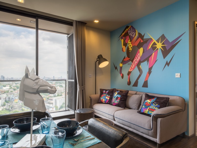 หรือที่รู้จักกันในนาม Clubpopp (นักออกแบบและนักวาดภาพประกอบอิสระสไตล์) – คุณพีระตกแต่งห้อง 2 ห้องนอน ขนาด 62 ตารางเมตร ผ่านคอนเซ็ปต์“Neo-pop” บอกเล่าถึง Lifestyle การใช้ชีวิต ของคนเมืองในปัจจุบันที่มีความสนุก และมีสีสัน