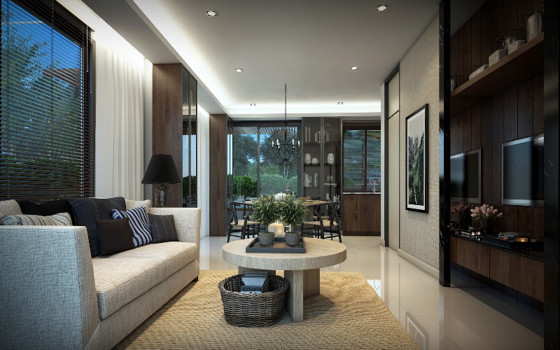 มีการใช้กระจกประตูและหน้าต่างบานใหญ่ทำให้ได้ช่องแสงขนาดใหญ่จากภายนอก ช่วยให้ประหยัดพลังงานเพื่อการพักอาศัย และเพิ่มความผ่อนคลายกับบรรยากาศรอบด้าน อีกทั้งยังทำให้ภายในตัวบ้านดูโปร่งโล่งสบาย พร้อมพื้นที่อเนกประสงค์ภายในชั้น 2 ตอบรับความสุขที่สมบูรณ์ของครอบครัวอย่างลงตัว