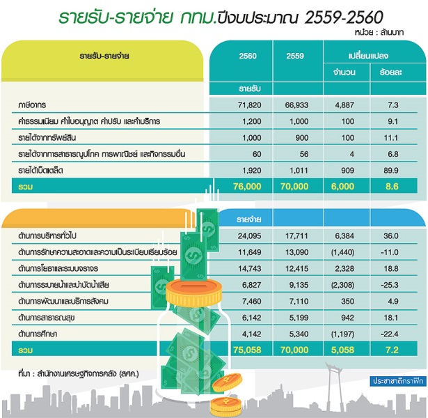 ในขณะที่ กทม.มีงบประมาณตกปีละ 7 หมื่นล้านบาท (ดูตารางประกอบ) เป็นรายได้จัดเก็บเองจากภาษีโรงเรือนฯ 1.2 ล้านบาท ดังนั้น ในอนาคตเมื่อมีการบังคับใช้ภาษีที่ดินฯ คาดว่าจะทำให้ กทม.มีรายได้จัดเก็บภาษีเพิ่มขึ้น เพื่อใช้ในการลงทุนและพัฒนาเมืองต่อไป