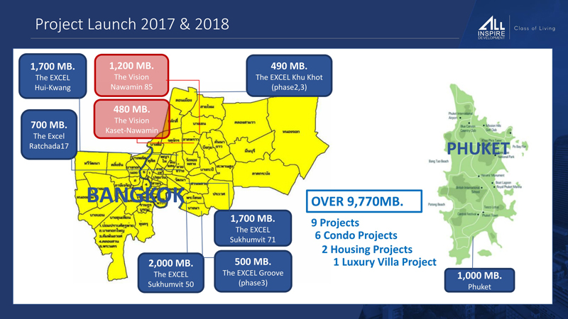 ล่าสุด All Inspire Development ได้มีการประกาศจับมือร่วมทุนกับ (Hoosiers Holdings) บริษัทบริษัท ฮูซิเออรส์ โฮลดิ้งส์ จำกัด(มหาชน) จากประเทศญี่ปุ่น เพื่อร่วมกันพัฒนา 3 โครงการ รวมมูลค่ากว่า 6,000 ล้านบาท โดยจะนำร่องโครงการแรก The Excel Hideaway สุขุมวิท 50 ก่อน