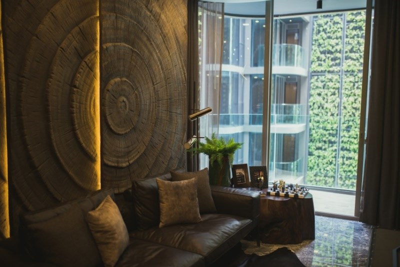 ด้านนอกโดดเด่นด้วย Vertical Garden ความสูงถึง 8 ชั้น เสมือน Cliff Garden เป็นการออกแบบให้ผนังระหว่างอาคารมี Vertical Green Wall ที่เริ่มจากสระว่ายน้ำ สูงขึ้นตลอดอาคารไปจนถึงชั้น 8 เพื่อลดความแข็งกระด้างของเปลือกอาคารด้วยความเขียวชอุ่มของต้นไม้ เป็นการสร้างมุมมองที่สดชื่นให้แต่ละห้องพัก