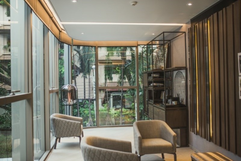และเพิ่มความเป็นส่วนตัวกับทางเดินแบบ Single Corridor มีช่องแสง Natural Light ที่ทางเดิน เพิ่มความสว่างและเป็นมิตรกับสิ่งแวดล้อม พื้นที่ภายในโครงการเลือกใช้วัสดุหินนำเข้าจากต่างประเทศ เพิ่มความหรูหราและทนทาน