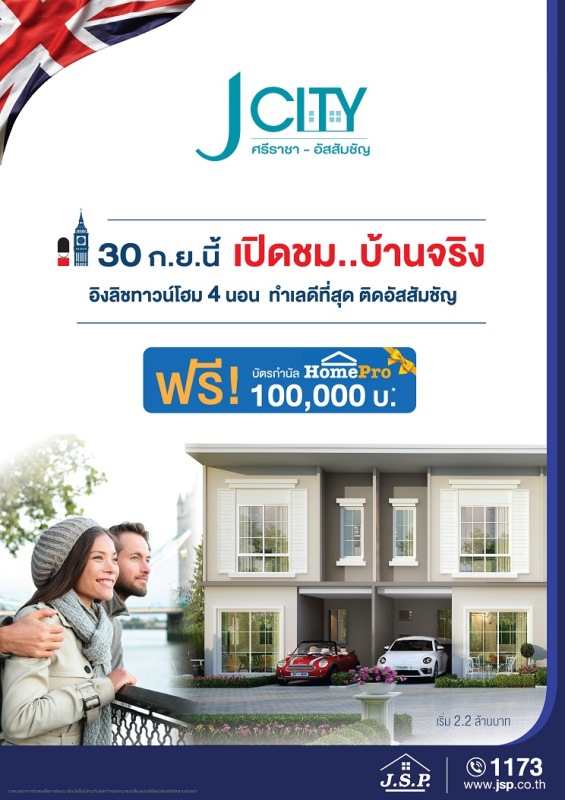 - โครงการใหม่ในบรรยากาศอังกฤษ บนทำเลที่ดีที่สุดใจกลางเมืองศรีราชา “The English Revival” พร้อมนวัตกรรมบ้านแห่งอนาคต“J INTELLIGENT DESIGN” By J.S.P. Property