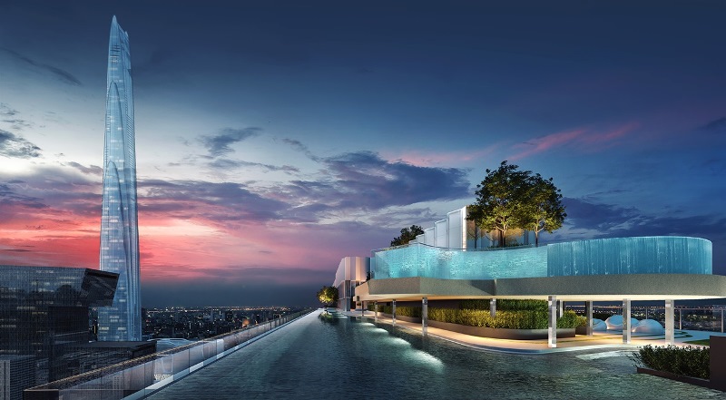 โดยได้ร่วมกับ ผู้เชี่ยวชาญในด้านการออกกำลังกายมาเป็นที่ปรึกษาในการออกแบบพื้นที่ฟิตเนสแห่งนี้ เพื่อให้สอดรับกับการใช้งานของผู้ใช้จริง พร้อมสระว่ายน้ำ 3 สระ บนชั้น 42 (rooftop) และชั้น 45 (rooftop) ซึ่งแบ่งเป็น 2 โซน แบบ Active Pool และ Scenic Glass Pool