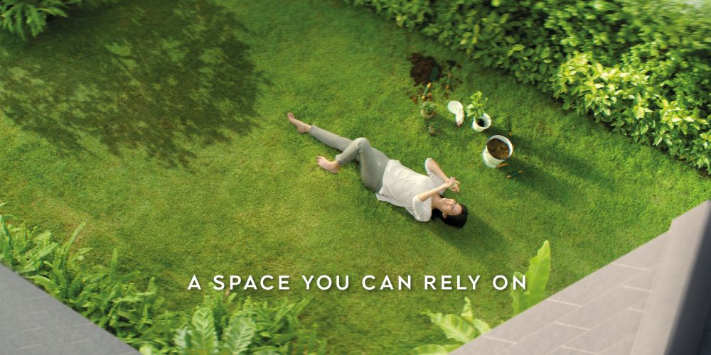 สวนสีเขียวที่ไม่ได้มีแค่โชว์ สวนจึงถูกออกแบบให้โอบล้อมรอบบ้านทั้ง 3 ด้าน ที่สัมผัสธรรมชาติได้ทั้งแนวตั้งและแนวนอน สามารถใช้งานได้หลากหลายทุกรูปแบบ แต่ยังคงไว้ด้วยความสงบด้วยกำแพงต้นไม้ทุกด้านที่โอบล้อม การจัดวางต้นไม้ที่คำนึงถึงทิศทางของแสงแดดที่ตกกระทบผ่านเข้ามาในตัวบ้าน ไม่เพียงแต่สร้างเงาที่สวยงาม แต่ยังให้ความร่มรื่น ออกมานั่นอ่านหนังสือในยามบ่ายแบบส่วนตัวแต่ยังคงมีปฎิสัมพันธ์กับครอบครัวได้อยู่
