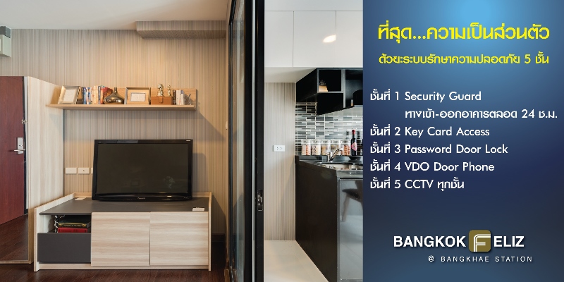ราคาพิเศษเริ่มต้นที่ 1.79 ล้านบาท (เฉพาะยูนิต) โครงการ Bangkok Feliz @ Bangkhae Station เป็นบูทีค คอนโด ที่ให้ความเป็นส่วนตัวมากที่สุด ด้วยห้องชุดเพียง 79 ยูนิต มีความเป็นส่วนตัวสูง โดดเด่นด้วยวัสดุคุณภาพ ได้แก่ พื้น Engineering Wood สุขภัณฑ์ไฮคลาสพร้อมฉากกั้นอาบน้ำนิรภัย และที่สำคัญมีระบบการรักษาความปลอดภัยเป็นเลิศ เพื่อชีวิตที่ดีกว่า