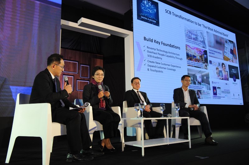 ถัดมา แสนผิน สุขี กรรมการผู้จัดการใหญ่ บมจ.แผ่นดินทอง พร็อพเพอร์ตี้ ดีเวลลอปเม้นท์ หรือ “โกลเด้นแลนด์” พร้อมด้วย ไตรเตชะ ตั้งมติธรรม กรรมการผู้จัดการ บริษัท ศุภาลัย จำกัด (มหาชน) และ จามรี เกษตระกูล รองผู้จัดการใหญ่ ผู้บริหารสูงสุดสายสินเชื่อที่อยู่อาศัย ธนาคารไทยพาณิชย์ นั่งล้อมวงเสวนาชวนคุยถึงทิศทางปีหน้า ธุรกิจอสังหาฯ ที่จะเป็นพลังขับเคลื่อนเศรษฐกิจไทย ในหัวข้อ “อสังหาริมทรัพย์ พลังขับเคลื่อนประเทศ”