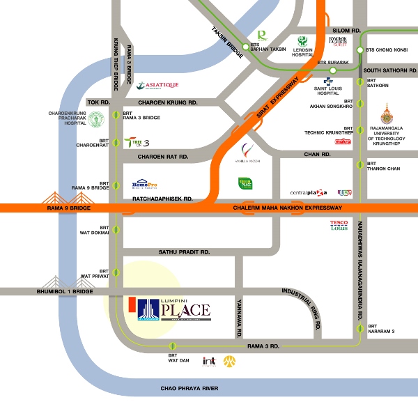 ตลอดจนอาคารสำนักงานขนาดใหญ่ เช่น สำนักงานใหญ่ธนาคารกรุงศรีอยุธยาและสำนักงานใหญ่ทิพย-ประกันภัย ซึ่งในอนาคตคาดว่าทำเล “พระราม 3 - ริมแม่น้ำเจ้าพระยา” จะยังคงเติบโตอย่างต่อเนื่องจากอภิมหาโปรเจคในอนาคต เช่น โครงการพัฒนาริมฝั่งแม่น้ำเจ้าพระยา (กรุงเทพมหานคร) โครงการ ASIATIQUE 2 พื้นที่ 30 ไร่ มูลค่า 2,000 - 3,000 ล้านบาทและโครงการพัฒนาพื้นที่สถานีแม่น้ำ บนเนื้อที่ 227 ไร่ มูลค่าการลงทุน 9.6 หมื่นล้านบาท