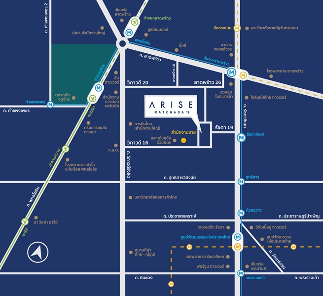 โครงการตั้งอยู่ในทำเลศักยภาพ ย่าน New CBD ที่สำคัญ เชื่อมต่อ 3 ทำเล รัชดาภิเษก ลาดพร้าว และ วิภาวดี และใช้เวลาเดินเพียง 5 นาที จาก MRT รัชดาฯ โครงการเป็นคอนโดมิเนียมโลว์ไรส์ 8 ชั้น จำนวน 132 ยูนิต 1 ห้องนอน มีขนาดตั้งแต่ 22.7-36.8 ตร.ม. และ 2 ห้องนอน มีขนาด 49.51 ตร.ม. ราคาเริ่มต้น 1.89 ลบ.*