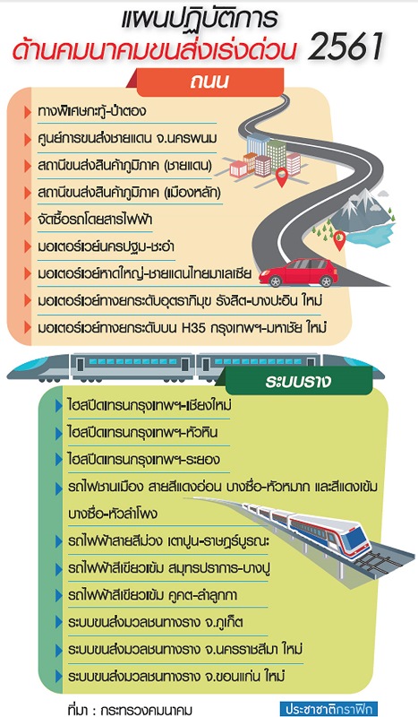 2.รถไฟ ที่ 3 ปีที่ผ่านมา รัฐบาลโดยกระทรวงคมนาคมใช้เม็ดเงินลงทุนในรถไฟเป็นอันดับ 1 เพราะเราต้องการชิฟต์โหมดจากถนนมาเป็นราง เพื่อลดต้นทุนการขนส่ง ทำให้เอกชนมีต้นทุนที่สามารถแข่งขันกันได้ อย่างไรก็ตาม เรายังขาดระบบเชื่อมต่อที่ต้องอาศัยดิจิทัล หรือระบบอิเล็กทรอนิกส์ ซึ่งเป็นสิ่งที่เราพยายามเข้าสู่ระบบนี้ให้ได้ เหมือนที่ขณะนี้เราทำเรื่องบัตรแมงมุม เป็นต้น