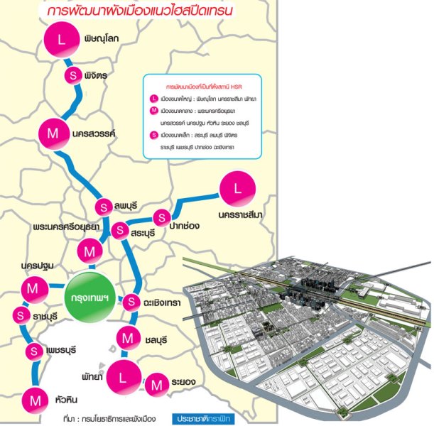 ในขณะนั้นศึกษาครบถ้วน 4 เส้นทาง 4 ภาค มี 17 สถานี ทั้งพัฒนาสถานีเดิมและเปิดพื้นที่ใหม่ มีเมือง 3 ขนาด คือ S-M-L (ดูแผนที่) พื้นที่ตั้งแต่ 2,000-5,000 ไร่ ในรัศมี 5-10 กม.รอบสถานีมีโมเดลญี่ปุ่นเป็นต้นแบบ ด้วยการพัฒนาพื้นที่ 2 ข้างทางให้เกิดมูลค่าเพิ่ม นอกจากเพื่อการเดินรถแล้ว จะต้องวางกรอบการพัฒนาพื้นที่รอบ ๆ สถานีเพื่อสร้างรายได้