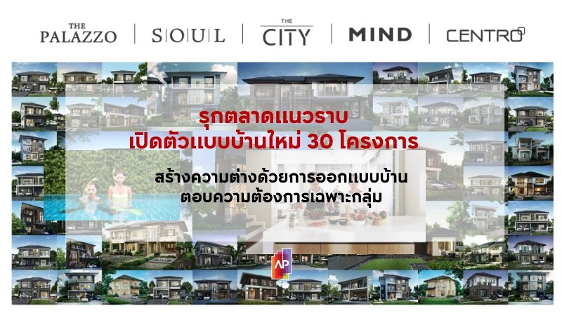 3. รุกตลาดสินค้าแนวราบ สร้างความต่างด้วยการออกแบบสินค้าที่ตอบความต้องการเฉพาะกลุ่ม (MASS CUSTOMIZED DESIGN) ในปีนี้ทีม AP Design Lab ไม่หยุดนิ่งที่จะสร้างความแตกต่าง ทั้งด้านการดีไซน์ และฟังก์ชั่นการใช้งานภายในตัวบ้าน เพื่อตอบความต้องการที่เฉพาะเจาะจงมากยิ่งขึ้น ซึ่งปัจจุบันเอพีได้พัฒนาแบบบ้านมากกว่า 70 แบบ
