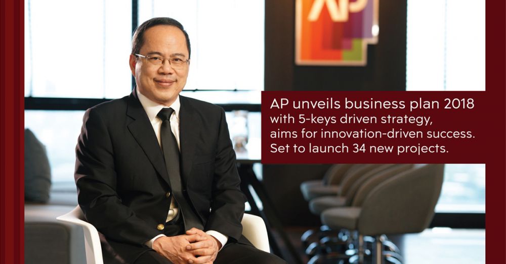 ผ่านแผนการดำเนินงานใน 5 มิติสู่ความสำเร็จ 1) สานต่อความสำเร็จกับกลุ่มมิตซูบิชิ เอสเตท 2) เปิดตัวสินค้าระดับ Super Luxury 3) รุกตลาดสินค้าแนวราบ สร้างความต่างด้วยการออกแบบสินค้าที่ตอบความต้องการเฉพาะกลุ่ม 4) ขยายพอร์ตตลาดต่างประเทศ 5) พัฒนานวัตกรรมดิจิตอลเพื่อคุณภาพชีวิตที่ดี ทั้งนี้ แผนการดำเนินงานบมจ. เอพี (ไทยแลนด์) ในปี 2561 ประกอบด้วย
