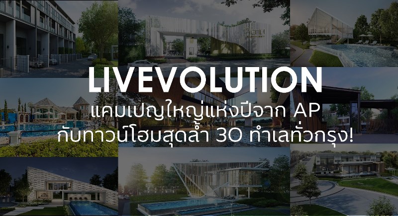 ห้ามพลาด! กับงานอีเว้นท์ครั้งใหญ่แห่งปีที่ไม่เคยมี Developer เจ้าไหนทำมาก่อน ‘LIVEVOLUTION’ งานรวมทาวน์โฮมสุดล้ำสมัยที่มาพร้อมกับนวัตกรรมแห่งอนาคต บน 30 ทำเลพร้อมอยู่ และพบกับการเปิดตัว 3 โครงการใหม่เร็วๆ นี้ที่ Sales Gallery ของ AP ทุกโครงการ