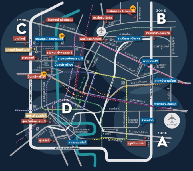 เฉพาะแค่ศักยภาพการเดินทางของโซน B ก็นับว่าสะดวกสบายไม่แพ้กรุงเทพชั้นใน ที่สำคัญ การเดินทางการโซน B ไปยังกรุงเทพชั้นในก็ไม่ใช่เรื่องยากอีกต่อไปด้วยรถไฟฟ้าสายหลักทั้ง 3 สายที่จะเชื่อมต่อกับทุกสายหลักๆ ในมหานครได้อย่างสบายๆ
