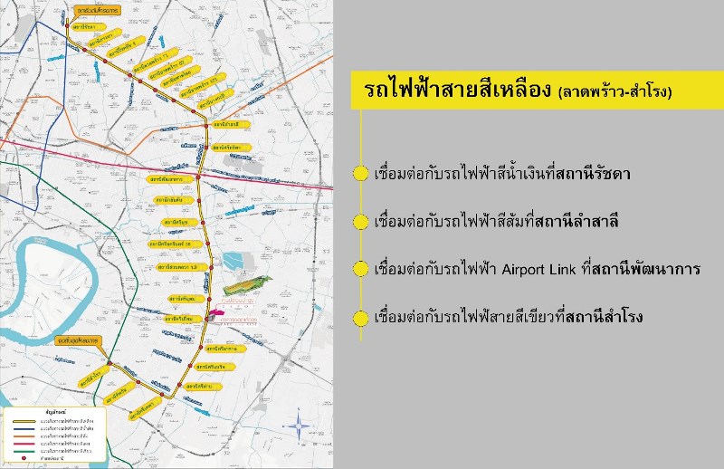 ด้วยการคมนาคมที่สะดวกมีทั้งทางด่วนรามอินทราอาจณรงค์ และรถไฟฟ้าที่จะเกิดขึ้นอีกหลายโครงการ ซึ่งนับว่าเป็นจุดเด่นที่จะทำให้ศักยภาพของทำเลนี้โดดเด่นขึ้นได้อย่างแน่นอน ได้แก่ รถไฟฟ้าสายสีเหลือง ลาดพร้าว-สำโรง ระยะทาง 30.4 กม. ที่ช่วยให้ผู้คนจากชานเมืองฝั่งตะวันออกอย่างแถบสำโรง ศรีนครินทร์ ลาซาล สวนหลวง เข้าสู่ย่านบางกะปิ-ลาดพร้าวได้ง่ายยิ่งขึ้น