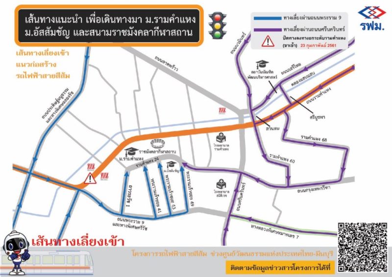 รามคำแหงติดหนึบ 3 ปี! ดีเดย์ 23 ก.พ.นี้ เริ่มทุบสะพานยกระดับรามคำแหงขุดอุโมงค์รถไฟฟ้าสายสีส้ม แนะใช้ทางเลี่ยง
