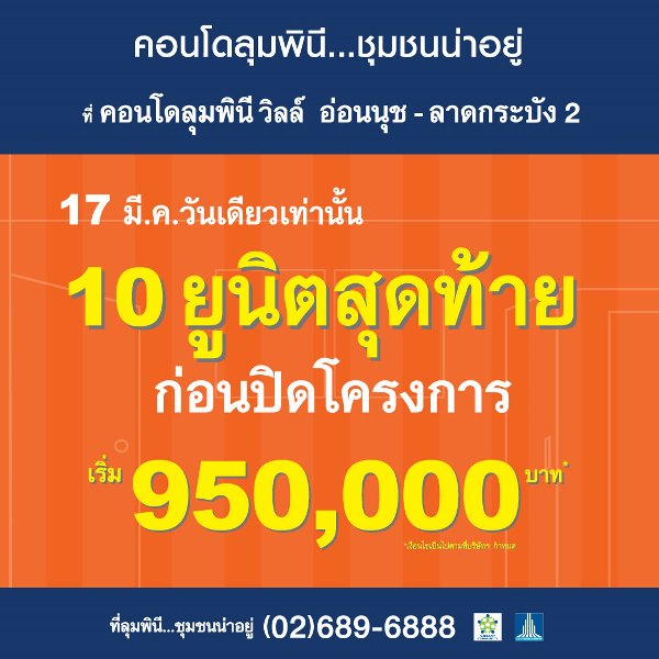 2. ลุมพินี วิลล์ อ่อนนุช – ลาดกระบัง 2 ราคาเริ่มต้นเพียง 950,000 บาท 10 ยูนิตสุดท้าย ก่อนปิดโครงการ