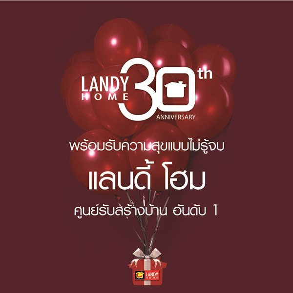 พิเศษสำหรับปีนี้ ครบรอบ 30 ปี แลนดี้ โฮม ได้มีการปรับเปลี่ยนภาพลักษณ์ให้มีความทันสมัยและสดใสมากยิ่งขึ้นภายใต้แบบบ้านที่หลากหลาย นวัตกรรมการอยู่อาศัยที่โดเด่น ตลอดจนการบริการที่ทันสมัยครบวงจร ซึ่งในโอกาสครบรอบ 30 ปี แลนดี้ โฮมขอส่งมอบความสุขแบบไม่รู้จบ ด้วยของขวัญสุดพิเศษ มาเอาใจลูกค้าที่ต้องการจะสร้างบ้านภายในปีนี้โดยเฉพาะ