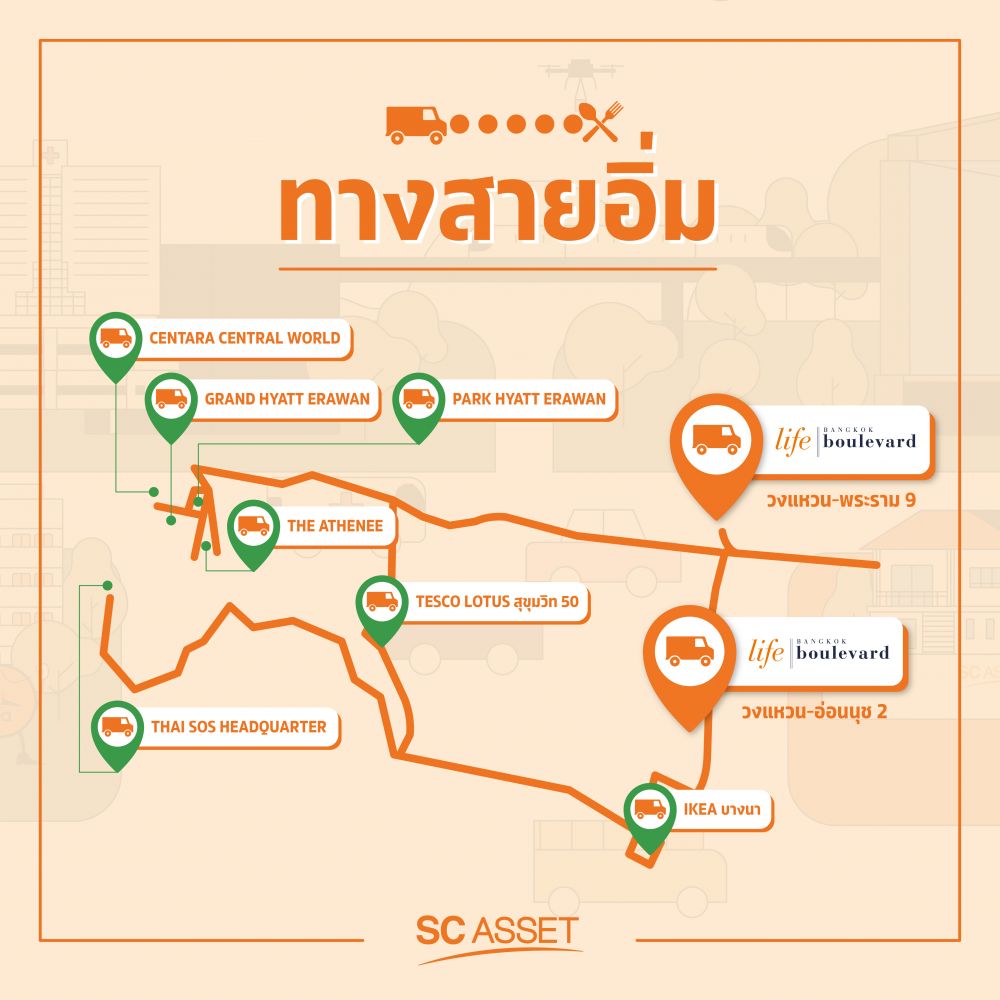 ตอนนี้โครงการของ SC Asset มีตู้เย็นไซส์ไจแอนท์ เหมาะสำหรับรองรับอาหาร โดยนำร่อง 2 ที่แรก คือ ไลฟ์ บางกอก บูเลอวาร์ด วงแหวน-อ่อนนุช 2 และไลฟ์ บางกอก บูเลอวาร์ด วงแหวน-พระราม 9 ซึ่งกำหนดจากเส้นทางหลักที่รถของ Thai-SOS วิ่งอยู่แล้ว เพื่อให้ง่ายกับการขนส่ง