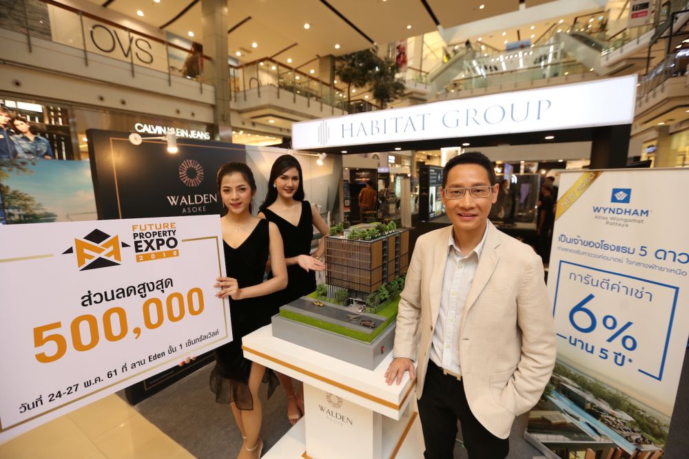 นายชนินทร์ วานิชวงศ์ ประธานเจ้าหน้าที่บริหาร บริษัท ฮาบิแทท กรุ๊ป จำกัด นำคอนโดฯ ลักชัวรี่ทำเลพัทยา และกรุงเทพฯ 3 โครงการ อัดโปรโมชั่นจัดเต็มในงาน “FUTURE PROPERTY EXPO 2018” ได้แก่ วาลเด้น อโศก คอนโดฯ ทำเลสุขุมวิท 23 ใกล้ BTS อโศกและ MRT สุขุมวิท มอบส่วนลดสูงสุดถึง 500,000 บาท
