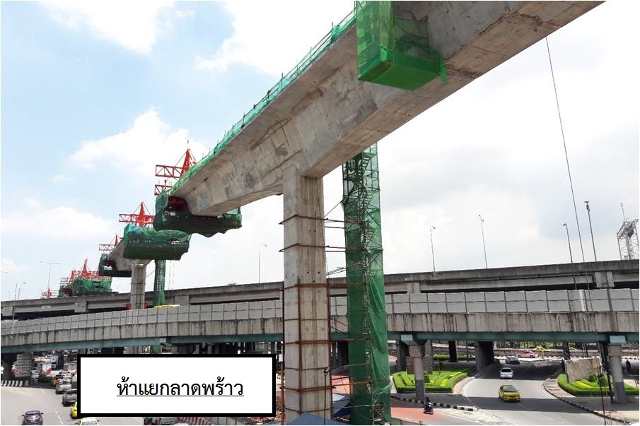 งานก่อสร้างทางวิ่งรถไฟฟ้าข้ามทางด่วนดอนเมืองโทลล์เวย์ บริเวณห้าแยกลาดพร้าว มีความคืบหน้า 70.64%
