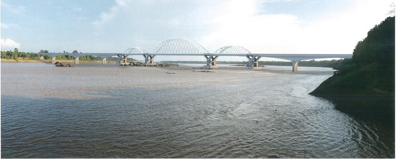 สะพานมิตรภาพไทย-ลาวแห่งที่ 6 – รูปแบบของสะพานมิตรภาพไทย-ลาวแห่งที่ 6 อุบลราชธานี-สาละวัน ที่กรมทางหลวงออกแบบแล้วเสร็จ จะสร้างเป็นสะพานโค้ง ARCH ซึ่งเป็นระบบ Tied Arch คานสะพานเป็นคอนกรีตหรือผสมเหล็กกับคอนกรีต