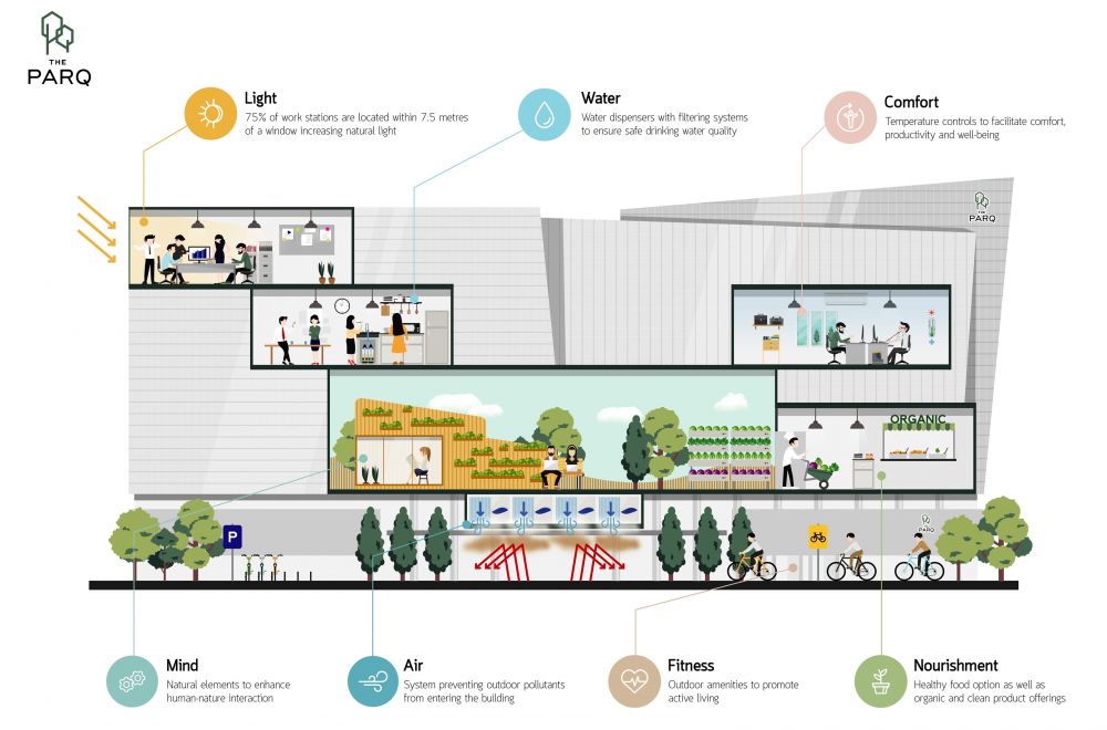 การออกแบบสถาปัตยกรรมอย่างยั่งยืนของโครงการเดอะ ปาร์ค (The PARQ ) ที่สร้างขึ้นตามมาตรฐานอาคารจากทั้ง LEED และ WELL จึงมีศักยภาพในการดึงดูดบริษัทชั้นนำ เพื่อร่วมผลักดันกรุงเทพฯ ให้เป็นศูนย์กลางธุรกิจแห่งใหม่ในภูมิภาคอาเซียนต่อไป
