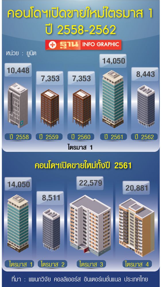ตามคาดภาพรวมตลาดคอนโดมิเนียมในพื้นที่กรุงเทพมหานคร ช่วงไตรมาส 1 ปี 2562 ผู้ประกอบการชะลอการเปิดตัวโครงการใหม่ โดยแผนกวิจัยคอลลิเออร์ส อินเตอร์เนชั่นแนล ประเทศไทย ระบุ มีเพียง 18 โครงการ 8,443 ยูนิต มูลค่าโครงการทั้งหมดอยู่ที่ 45,432 ล้านบาท และส่วนใหญ่เปิดขายในช่วงปลายเดือน มี.ค.